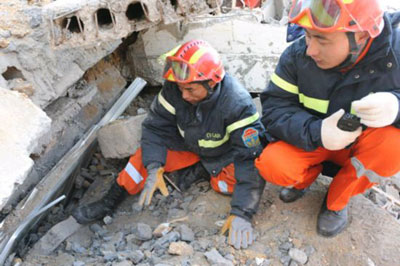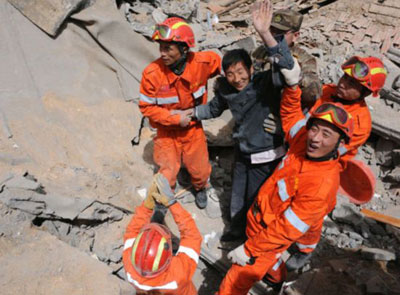 國家救援隊在到達玉樹機場后,救援隊員火速前往受災最重的玉樹縣城結古鎮。全體救援隊員挑燈夜戰,齊心協力營救出2名幸存者。雖初戰告捷,但救援隊員不敢絲毫松懈,因為廢墟還有更多生命等待我們。只要有一線希望,我們就會盡百倍努力,“不拋棄,不放棄”。