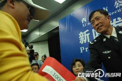 發(fā)布會最后,王海玲將公安部門承諾的1萬元懸賞金兌現(xiàn)給了為此案提供重要線索的群眾。
