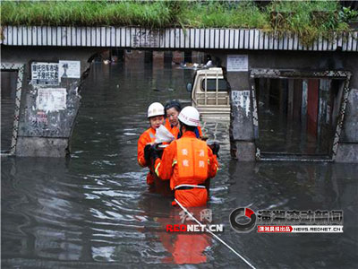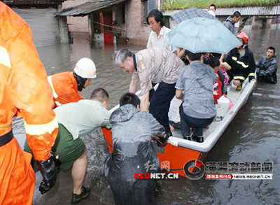 6日早上7時50分,新化消防大隊接到報警,位于城區的立新橋社區,因雨水淤積,致使一整棟大樓的人員被困。大隊人員在趕到現場后,立即開展救援活動,因缺乏救援船,中隊指導員帶領中隊班長助理只身游過去查看情況,并救出有心臟病的老人。