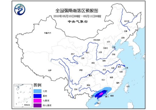 中新網5月10日電 中央氣象臺5月10日06時繼續發布暴雨黃色預警:預計,10日08時到11日08時,廣西南部、廣東大部、海南西北部等地的部分地區有大雨,廣西東南部、廣東西南部的部分地區有暴雨,局地有大暴雨。上述局部地區并伴有短時雷雨大風或冰雹等強對流天氣。