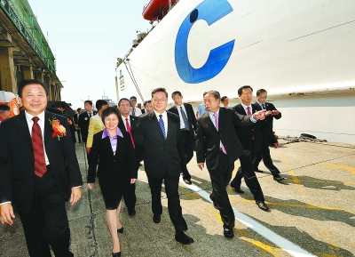 10日上午,兩岸之間唯一一艘獲批的常態化定期班輪——“中遠之星”輪成功從廈門港首航高雄港。省領導黃小晶、陳樺、葉雙瑜、蘇增添一行出席首航儀式并鑒證廈門港務局與高雄港務局、廈門海滄保稅港區與高雄自由貿易中心現場簽署合作協議。初夏的高雄港海天一色、潮平浪闊,黃小晶一行登船出海,考察這一臺灣最負盛名的天然良港。在與當地交通部門負責人交談過程中,黃小晶說,“中遠之星”輪繼開通臺中港、基隆港航線之后,再增加高雄港航點,首次開通廈門至高雄港客貨滾裝航線,創新了海峽兩岸現有的海上運輸模式,實現了真正意義上的客貨直航。希望兩岸能夠攜起手來,致力于推動更多的直航班輪實現常態化運營,特別要爭取直航班輪與旅游精品線路和物流配送相結合,帶動臺灣南部與大陸之間在旅游業、農產品供銷等方面更深入的交流,以實際行動為兩岸同胞多謀福祉。