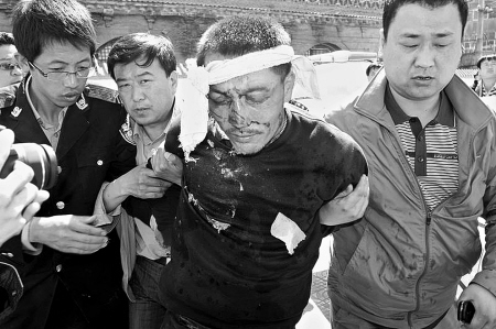 8時(shí)20分,民警破門而入,宋利榮揮刀拒捕,并企圖自殺,民警鳴槍警告,隨后將宋利榮制服,繳獲全部作案工具。據(jù)了解,犯罪嫌疑人宋利榮企圖自殺時(shí)傷到了頭部,傷勢并無大礙。