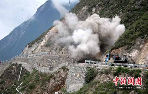中新網汶川5月31日電(于海忠 劉忠俊)因山體垮塌中斷的國道213線汶川段搶險工作正在緊張進行。該路段預計31日17時左右可實現通車。
