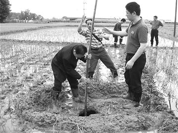 對于如何處理這兩個“天坑”,劉俊賢建議,首先,要在坑洞周圍不小于3米的范圍內(nèi)拉上警戒線,豎立警示標(biāo)志,防止小孩等掉入坑洞內(nèi)。其次,盡快回填塌陷坑洞,回填時應(yīng)分層夯實,避免砂土等透水性較強土體回填,回填后應(yīng)滿足水田種植要求。回填之前,應(yīng)阻擋灌溉水等地表水繼續(xù)流入塌陷坑洞中,以免坑洞進一步擴大。