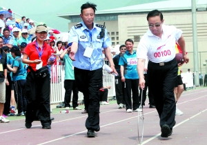傅政華帶領北京市公安局領導班子,比賽跳繩,并以30秒68次的成績,名列第三名,其實就是倒數第二名。