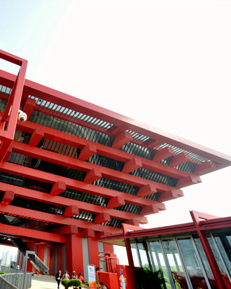 2009年5月25日,上海世博會中國館“東方之冠”正式吊裝具有濃郁中國色彩的“中國紅”外立面,開始進(jìn)入為期兩個月的外立面掛板作業(yè)。