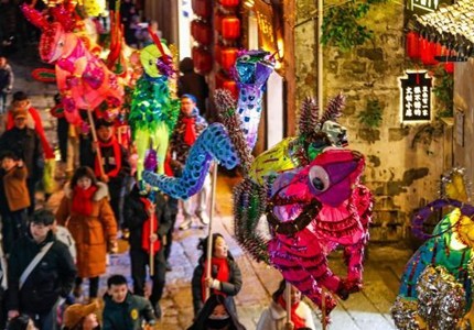 江蘇徐州:鄉村揉鐵花鬧元宵 村民自辦村晚過佳節