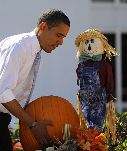 10月30日,在美國佛羅里達州的薩拉索塔,選戰中四處奔走的美國民主黨總統候選人奧巴馬忙里偷閑,來到當地的一家南瓜園摘南瓜,享受片刻悠閑。