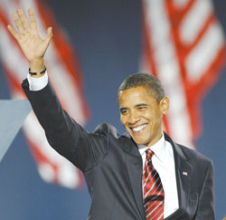 中新網11月6日電 臺灣《中國時報》今天頭條報道,2008年美國大選揭曉,歷史新頁從此展開。代表民主黨、現年四十七歲的伊利諾伊州聯邦參議員巴瑞克•奧巴馬(Barack Obama)一如各方預期,擊敗共和黨候選人麥凱恩,當選美國第四十四任總統,而且是第一位黑人總統,象征兩百多年來美國政治上的種族藩籬終于粉碎。