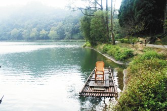 印象最深的是湖畔的一只竹筏,停在2號館前。導游說,當年蔣介石與兒孫常乘竹筏游大漢溪,此為知名的復刻版竹筏;竹筏旁有一棵細葉檸檬樹,則是蔣介石疼惜妻子、種樹驅蚊;1-5號館前都種滿香氣宜人的桂花、茶樹,也是蔣介石疼某的表現。