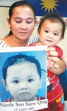 事主5日帶著只有9個月大的兒子艾比,向馬華公共服務及投訴部主任拿督張天賜求助,希望透過媒體和公眾的幫助尋找愛女。