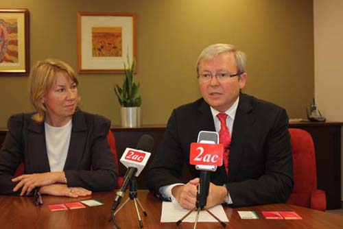 中新網8月19日電 據澳洲新快網報道,為爭取Bennelong選區華人支持,陸克文(Kevin Rudd)、麥嬌(Maxine McKew)8月18日下午在聯邦政府大廈會晤華文傳媒,支持被他成為20多年好友的麥嬌,表示如果工黨贏得大選他將在聯邦政府內任職。