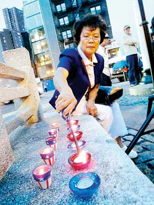 11日晚間7時,在莊嚴的國歌聲中,燭光晚會在華埠且林士果舉行。應邀出席的紐約市華裔主計長劉醇逸,市議員陳倩雯、顧雅明,中華公所代主席徐澄宇等在發言中表示,“911”是人類的一次災難深重的浩劫,給民主、自由、祥和、繁榮的美國帶來極大的負面影響,特別是鄰近世貿廢墟的華人社區,在精神、經濟上更是遭受了前所未有的打擊,因此紀念“911”對華埠來說意義重大,大家不要忘記死難者,也不要忘記華埠至今仍然未能全面復蘇。參加活動的人士均希望這樣的悲劇不要再次發生,同時也希望國民一起努力,盡快走出目前的經濟困境,一起建設這個美好的國家。