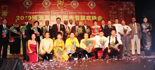 中新網(wǎng)2月20日電 據(jù)非洲《華僑周報(bào)》報(bào)道,2月13日晚,經(jīng)過緊張的籌備,博茨瓦納僑界2010春晚在博茨瓦納哈博羅內(nèi)大棕櫚國際會(huì)議中心(GICC)圓滿成功舉行。中國駐博茨瓦納大使劉煥興、政務(wù)參贊茍皓東夫婦、北京市人大副主任、中國僑聯(lián)副主席、北京市僑聯(lián)主席李昭玲及在博華僑華人約850人同聚一堂,共慶中華民族的傳統(tǒng)佳節(jié)—-虎年春節(jié)。晚會(huì)以規(guī)格最高、參與人數(shù)最多創(chuàng)下了歷屆博茨瓦納僑界春晚之最。