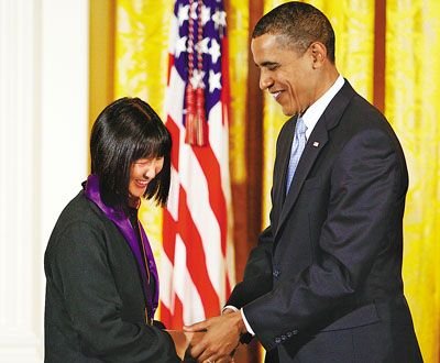 中新網2月27日電 據美國《世界日報》報道,20歲那年設計華盛頓越戰紀念碑而一夜成名的華裔建筑師林瓔(Maya Lin),當地時間25日晚在白宮獲奧巴馬總統頒發2009年國家藝術獎章。林瓔這項成功的設計已和美國歷史融為一體。