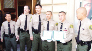 畢業后被分配到洛杉磯雙塔監獄工作的陳得光,7歲的時候跟隨父母從香港移民美國,并在柔似密安家落戶。從小就想當警察的他06年報名加州大學爾灣分校,專修犯罪心理學,畢業后又在今春報名參加了洛縣警局警察培訓學校,經過19周的緊張訓練,終于在今天的畢業典禮上穿上了夢寐已久的警服。