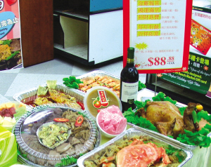經濟不好,團年飯改在家里吃吧!大華超市公關經理曹其崢表示,他們根據市場的判斷,認為許多華裔人士會追求經濟實惠的家庭套餐,如果可以讓他們在家里就可以座享餐館的美食,將會受歡迎。因此,他們推出了力求薄利多銷,“百元有找”的新春套餐。新春套餐以“金雞報喜”、“鴻運滿堂”、“招財進寶”、“年年有余”等吉祥話命名,包括全雞、大蝦、肉蟹、黃金魚及魯菜拼盤,另外贈送紅酒、水果盤、發糕及年糕,全部套餐只要88.88元。