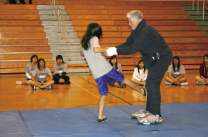 記者發現,幾十名華裔女生大都比較害羞,吶喊聲音很小,動作也只是點到為止。相比之下,西裔女生則很認真,而且敢于上場與“色狼”對練。華裔11年級女生陳青青表示,學了自衛術之后,覺得很有用,起碼在遇到被色狼攻擊的時候不會那么害怕,知道該怎樣應付,如何脫身。