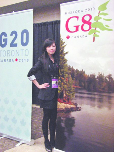 來自溫哥華的華裔女生蔡彬悅是加拿大代表隊中唯一一名華人。她在2000年3月跟隨父母從北京移居溫哥華,現已從Sir Wiston Churchill中學畢業,將在今秋進入多倫多大學攻讀社會科學專業。蔡彬悅告訴記者,她是“環球視野”組織在加拿大的青年大使,她參加這次“2010我的峰會”,最為關注的議題就是如何改善窮困國家的母嬰健康。她說:“因為她們是弱勢群體,應該得到保護。”