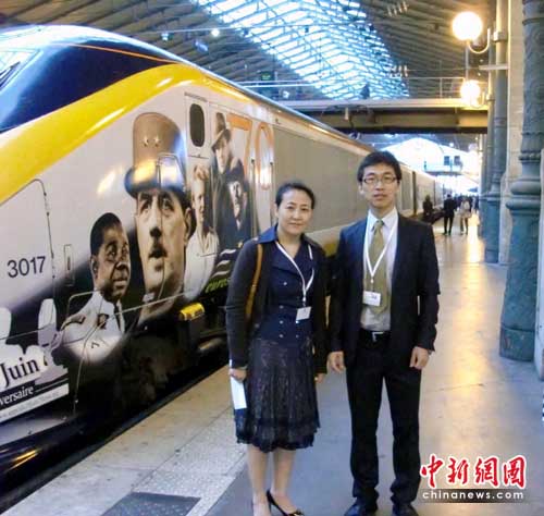 中新網巴黎6月19日電 經戴高樂基金會推薦、法國總統府邀請, 旅法華僑、巴黎戴高樂中文圖書館執行館長舒麗華女士,6月18日隨同法國代表團一起,乘坐“紀念專列”從巴黎抵達倫敦,參加法英兩國共同舉辦的紀念戴高樂將軍“抗戰宣言”發表70周年活動。