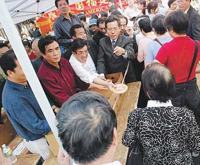 中新網9月23日電 據美國《世界日報》報道,今年的農歷中秋佳節(jié)落在10月3日,美國福建同鄉(xiāng)會21日與20多個社團和政府部門在紐約曼哈頓華埠舉行盛大的“中秋福建街坊節(jié)”,吸引超過5000民眾參加,其中大部分為閩籍鄉(xiāng)親,也有不少非華裔民眾湊熱鬧。福建同鄉(xiāng)會并在下午為鄉(xiāng)親派發(fā)福建的傳統月餅,共派出1500多份,眾多鄉(xiāng)親開心排隊領取。