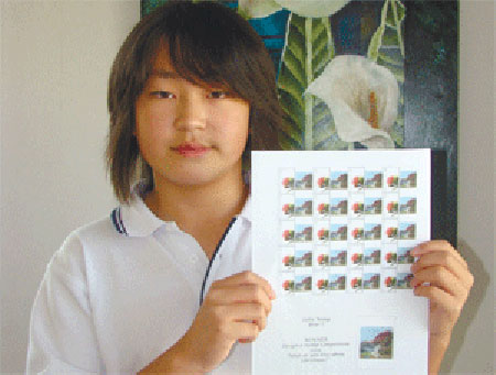 中新網11月20日電 據新西蘭《中文先驅報》報道,近日,新西蘭郵政局正式發行2009年圣誕節郵票。在過去的49年里,每年圣誕節來到之前,郵政局都要發行一套特意設計的圣誕郵票,借助小小的郵票,為圣誕節涂上一抹喜慶的色彩。這不但是官方慶祝圣誕節的舉措之一,也是新西蘭文化藝術界的盛事。讓華人驕傲的是,在今年的圣誕節郵票設計大賽中,11歲的華裔小子王若然(Felix Wang)“藝”高一籌,從14200多名參賽者中脫穎而出,榮膺郵票設計大獎。