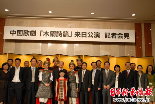 據介紹,花木蘭代父從軍的故事是中華民族代代相傳的感人篇章,2004年,這一故事被創作成歌劇《木蘭詩篇》,不但在國內受到好評,還在美國、奧地利上演,贏得國際聲譽。這次赴日演出,《木蘭詩篇》又經過中日兩國藝術家的重新制作,總政歌舞團團長彭麗媛任藝術總監,雷佳、譚晶、王麗達等主演木蘭,中國指揮家李玉寧和日本指揮家堤俊作將聯合執棒指揮日本皇家交響樂團演奏,中方演出隊伍達110多人。