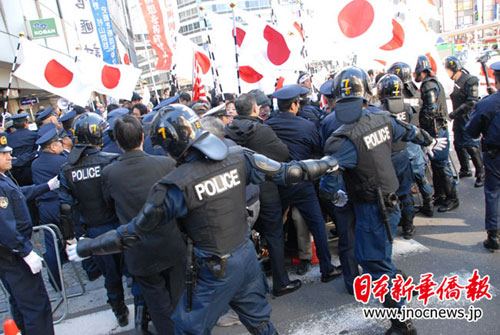 中新網1月10日電 據《日本新華僑報》報道,10日,日本右翼團體在東京池袋中國人物產店——“陽光城”物產店前舉行的抗議活動計劃,在警方的阻止下沒有得逞。
