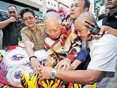 中新網2月12日電 據馬來西亞《光華日報》報道,馬來西亞首相拿督斯里納吉11日下午在農歷新年前訪茨廠街,與各小販商家和普羅大眾拜早年迎接金虎。這也是納吉自去年4月4日上任以來第3度訪茨廠街。