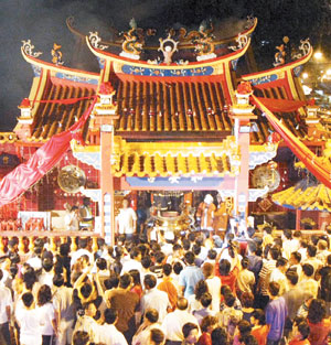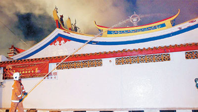 瓜登市民每年都依據(jù)傳統(tǒng)在大年初九到這所福建古廟拜天公,不過,這所廟卻在慶典后不及24小時(shí)的22日晚約9時(shí)30分發(fā)生火患。該廟中間殿堂率先冒煙,進(jìn)而燃起雄雄烈火,并把廟內(nèi)多處燒毀。