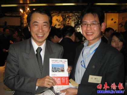 日本湖南人會會長段躍中回憶了向菅直人贈送中國人日語作文大賽獲獎作品集《對日中友好的建議》及幾次和菅直人交流的故事。段躍中指出,這次菅直人當(dāng)選新的日本首相,對中日關(guān)系會起到良好的促進(jìn)作用,期待菅直人更加發(fā)揮中國留學(xué)生的作用,開創(chuàng)中日交流的新局面。