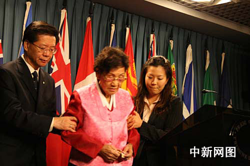 中新網(wǎng)渥太華11月27日電(韓瀟)來自中國、韓國、菲律賓和荷蘭的四名年逾八旬的“慰安婦”幸存者今天在渥太華國會山舉行聽證會,控訴日本政府在二戰(zhàn)中強(qiáng)迫婦女充當(dāng)“慰安婦”的罪行,并呼吁加拿大敦促日本承認(rèn)戰(zhàn)爭罪行,向“慰安婦”正式道歉和賠償。據(jù)悉,這是加拿大歷史上首次有二戰(zhàn)“慰安婦”在國會作證。