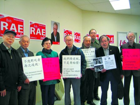 人頭稅苦主及家屬聯(lián)盟昨日前往李博的競選辦公室請愿。(加拿大《明報》)