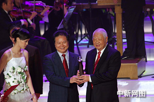 “中山杯”華僑文學獎頒獎典禮,12日晚在孫中山故鄉廣東中山市舉行,“中山杯”華僑文學獎是經中央宣傳部、中國作家協會批準,由中華文學基金會和中山市委、市政府主辦的新中國成立60年來第一次面向全球征集反映華僑生活文學作品的大型征文活動。活動旨在重溫孫中山先生“敢為天下先”的膽識和魄力,弘揚中華民族優秀傳統文化,推動華僑文學事業發展,為祖國的繁榮和中華民族的統一作出積極的貢獻。洛夫(右)的《雨想說的》獲詩歌組最佳作品獎。