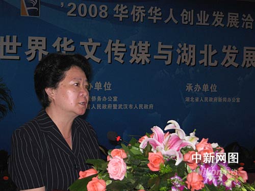 湖北省副省長張岱梨出席世界華文傳媒與湖北發展論壇并致辭。