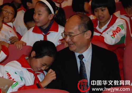 10月21日晚,世界華文教育大會舉辦首屆中華文化知識競賽總決賽,國僑辦副主任趙陽與來參加活動的成都樹德中學(xué)的小朋友親切交談。