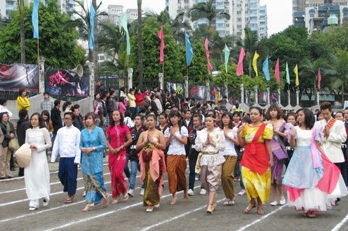 早上八點,早就整裝待發的運動員、裁判員列隊進場,五洲學子整齊劃一地通過主席臺,并表演了精彩的節目,展現出昂揚的精神面貌,充分體現了華文學院國際化辦學特色。華文學院黨委書記曾文明在開幕式上講話:要求同學們加強鍛煉,提高體質,,并通過運動會這樣的形式,賽出風格、賽出水平,加深友誼,爭取取得更好的成績。