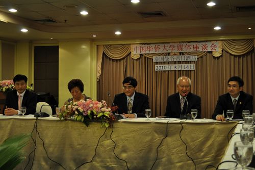 14日上午,代表團在曼谷舉行泰國華文媒體見面會。華僑大學副校長張禹東向泰國華文媒體介紹了華僑大學的辦學情況,特別是在泰國開展的華文教育情況和建校50周年慶典活動的籌備情況,向泰國華文媒體對該校的長期支持表示感謝,期望雙方今后繼續(xù)加強聯(lián)系合作,進一步提升華僑大學在泰國的社會影響力。與會人員就如何在泰國華文媒體乃至泰文主流媒體建立密切有效的合作方式加強對華僑大學的宣傳、繼續(xù)組建泰國媒體訪問團來校訪問、校慶報道等問題進行了富有建設性的交流,就有關問題達成共識。
