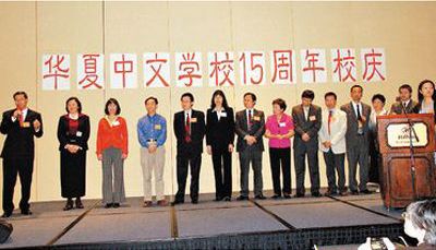 中新網(wǎng)5月4日電 據(jù)美國(guó)《世界日?qǐng)?bào)》報(bào)道,為了慶祝建校15周年,美國(guó)華夏中文學(xué)校日前舉辦慶祝晚會(huì),中國(guó)駐紐約總領(lǐng)館代總領(lǐng)事董曉軍、新州聯(lián)邦眾議員霍特等官員、社區(qū)名流、華夏部分往屆總校長(zhǎng)、各分校校長(zhǎng)、董事長(zhǎng)和教師、學(xué)生代表200多人歡聚一堂,共同分享“華夏人”15年來(lái)的成果和喜悅。