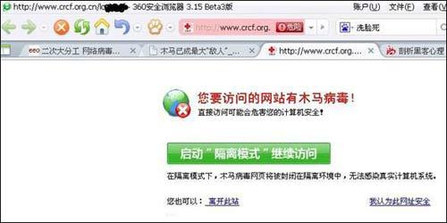 紅十字基金會官網服務器被放置了木馬,遭360安全瀏覽器攔截