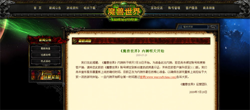 中新網7月29日電 網易《魔獸世界》官方網站今天下午發布最新公告,稱《魔獸世界》內測將于明天7月30日開始,但并未宣布明天內測開始的確切時間。