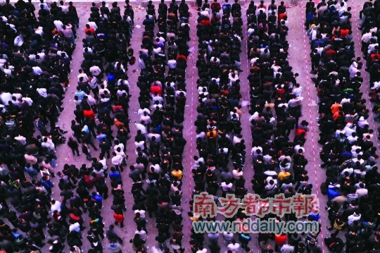 誰(shuí)說(shuō)今年企業(yè)招工難?過(guò)去一個(gè)多月,龍華富士康門(mén)口日日數(shù)千人求職,密度可比春運(yùn)火車(chē)站,進(jìn)人群易出人群難,站著睡覺(jué)不會(huì)倒,上個(gè)廁所得憋著。昨日凌晨5時(shí)左右,由于保安未上班無(wú)人看管,求職者更是擠倒欄桿,人仰馬翻,互相踩踏,幸無(wú)人員傷亡。