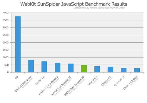 在JavaScript測試中,新版本較IE8有較大提升,但仍落后于Chrome、Opera和Safari。