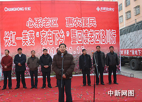中新網1月18日電 1月16日,“長虹-美菱家電下鄉暨回饋老區洛川行”現場儀式活動在革命老區延安洛川縣舉行。陜西省財政廳、商務廳、陜西省消協及延安市、洛川縣有關領導出席了活動。