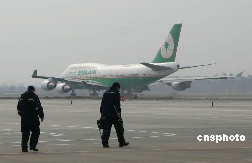12月23日14時15分,運載贈臺大熊貓“團團”“圓圓”和17棵珙桐樹苗的臺灣長榮航空公司專機,在成都雙流國際機場跑道開始滑行,準備起飛。中新社發(fā) 霍潺 攝