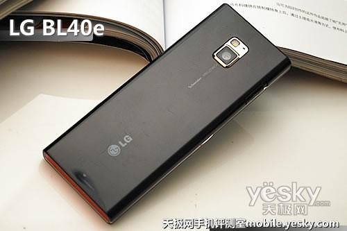 BL40e機身正面采用了無按鍵式設計,所有的操作都通過21:9的4英寸屏幕實現,如鏡面般的純平機身,讓手機的品味凸顯,不過觸屏手機容易沾染指紋的問題,在這款手機上也比較明顯,建議隨身攜帶一塊屏幕擦布,再使用之后將手機擦拭干凈。當然這款手機的正面有些太“黑”了,若不是屏幕上方的聽筒還比較明顯,我想多人都會將手機反著拿起來接電話。而屏幕下方隱約可以見到LG的Logo,不要小看了低調的銘牌設計,這正是LG手機高端時尚品牌LG “Black Lable”(LG黑標)的象征。