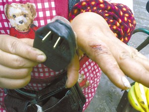 “這就是電池爆炸后留下的傷口。今天是第三天了,傷口還是痛。”昨天下午,記者見到了最近為手機電池傷透了腦筋的鄧女士,她揚起左手食指給記者看時,還有些心有余悸。因為此前的爆炸,她左手食指第三個關(guān)節(jié)處已皮開肉綻,一條近2厘米的傷口很顯眼。