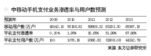 東方證券撰寫報告認為這種應用于特定的零售、電子商務和交通等領域的小額現場支付場景,具有快捷、便利、安全三大客戶價值。“目前,中移動已在10省范圍內開展手機支付業務的試商用。調查顯示,市場對該業務有較強關注度,移動各營業廳中,對手機支付業務的問詢度日趨上升;而在已開通手機支付業務,實現特約商戶購物和搭乘交通工具的城市中,用戶對該業務反響良好,對該業務發展前景看好。”
