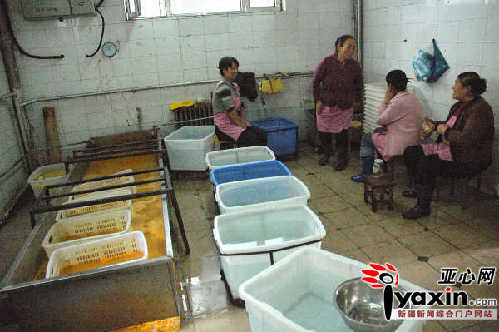 “什么無菌消毒,消毒機(jī)器都不用。”一位曾經(jīng)在這家餐具消毒廠工作過的洗碗女士向記者介紹了她當(dāng)時(shí)工作的情景。她說,去年她就在里面工作,剛開始兩個(gè)月,老板確實(shí)要求他們按照正常的程序操作工作,后因電費(fèi)、水費(fèi)過高等原因,工廠改變了餐具清潔方式。