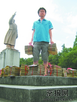 當(dāng)時雷闖邀請了他的一個同學(xué)陪同。這個同學(xué)除了拍照之外,還承擔(dān)著另一個任務(wù)——給杭州市的各家媒體打電話,希望能有記者前來報道。可結(jié)果讓雷闖很失望,這一次他并沒有引起媒體的注意。那個陪同的同學(xué),也因為“受不了路人的目光”而中途離場。